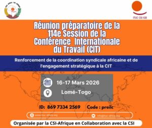 Les syndicats africains se réunissent à Lomé, Togo, les 16 et 17 mars 2026, pour une réunion stratégique de préparation à la prochaine session de la Conférence Internationale du Travail
